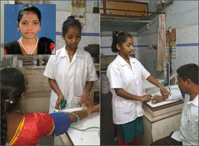 After completion of the training he got placement with the support of the BLS centre team. Currently he is working in Balaji Medical Agency as salesman. He is earning a monthly salary of Rs.5000/- and additional income through over time work. He expresses his gratitude to MEPMA and Bright Light Society for giving him this opportunity. Now all his family members are very happy that too. “Today is happy with a satisfying job where I am doing my work with the knowledge that I received from the course”.